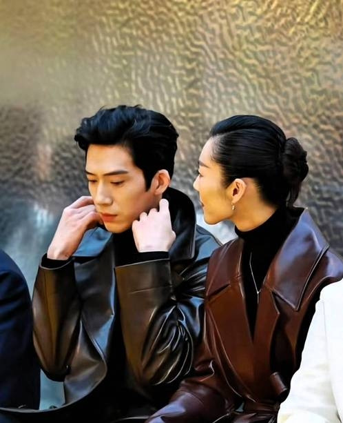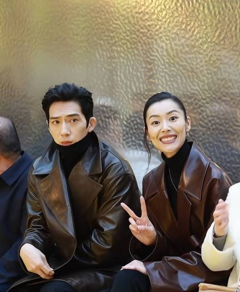 刘雯轻碰井柏然示意看镜头,两人同步比耶的瞬间,这场时尚大秀的焦点已从华服转向了这对默契搭档。